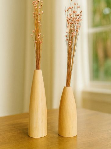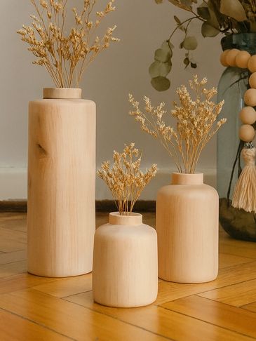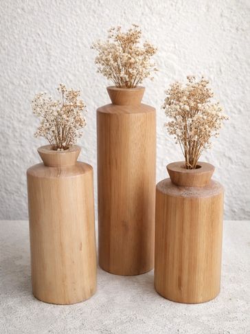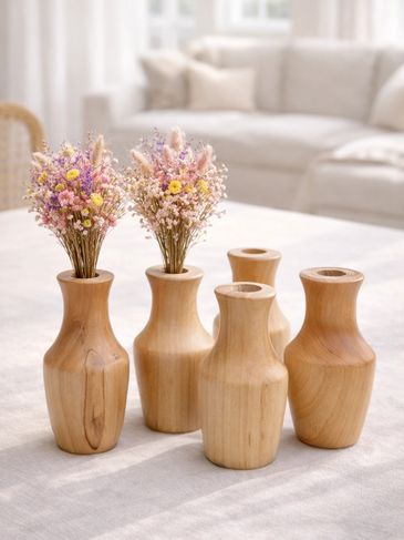 Oscilan entre 9 y 11.5 cms de altura. Mini floreritos torneados en madera de euca. precio por unidad.-