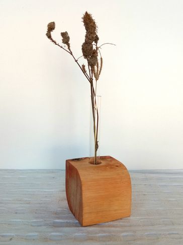 Florero artesanal en madera de euca de 7 cms x 7 cms. Incluye tubo de ensayo de 10 cms de altura.-